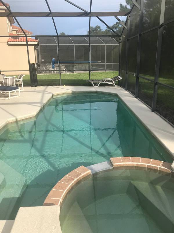 - Screened in pool and spa with patio furniture