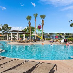 LIVING ROOM Spacious, stylish area perfect for relaxing after the parks Plush seating for everyone Smart TV with cable Welcoming space for family gatherings GOURMET KITCHEN & DINING Full kitchen with stainless steel appliances and granite countertops All cookware, utensils, and glassware included Dining table seats up to 12 guests BEDROOMS 2 King Master suites with en-suite bathrooms 1 cozy Queen bedroom on the first floor 3 twin-themed rooms designed for kids GAME ROOM Shuffleboard and pool tables Arcade games and consoles (Xbox 360, PlayStation, Wii) Fun for all ages PRIVATE POOL & SPA South-facing private pool Soothing spa for ultimate relaxation Expansive deck with loungers, tables, and chairs
