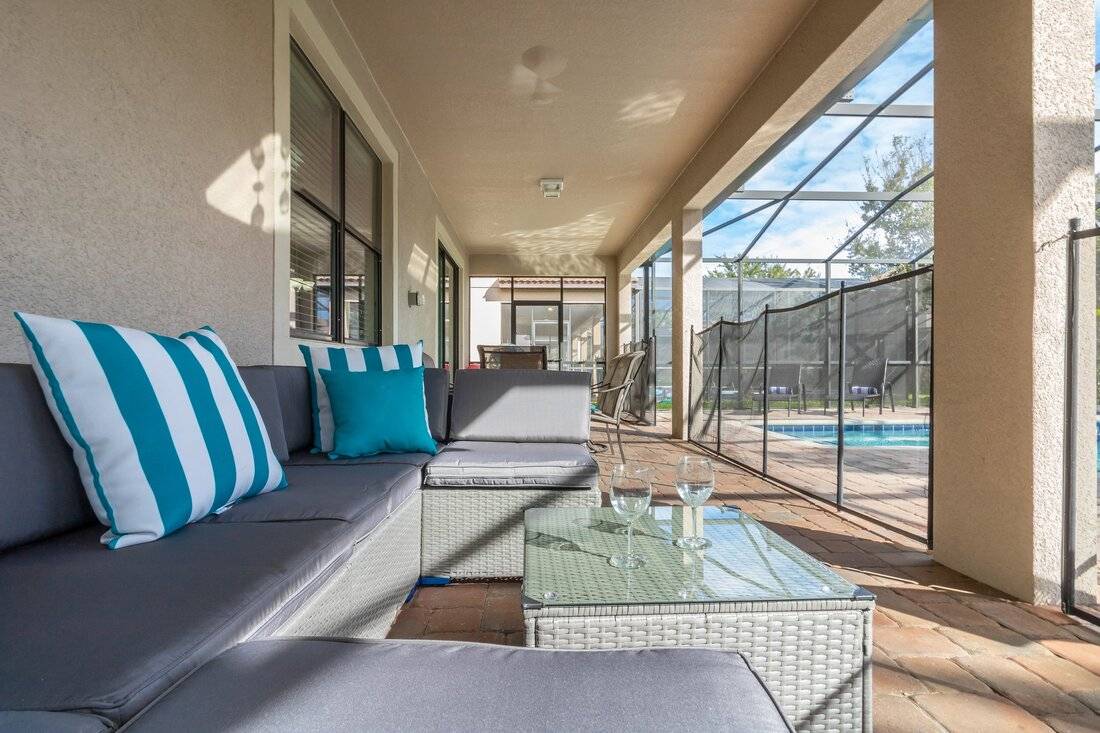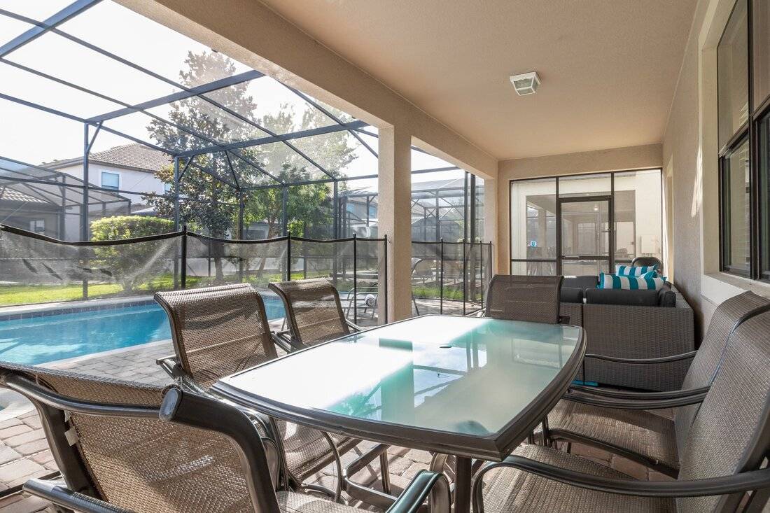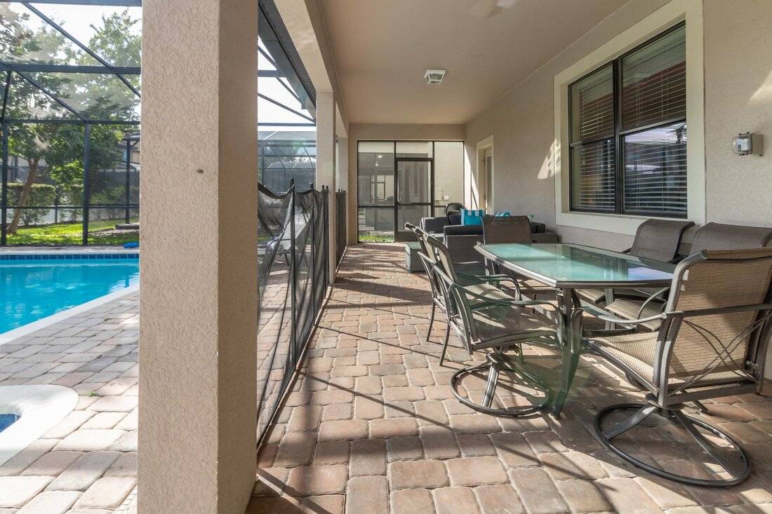 - Partly covered large deck overlooking private pool with lots of deck furniture