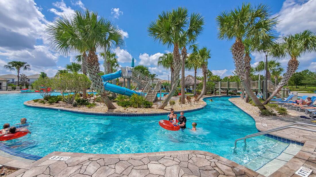 - Resort amenities include clubhouse, restaurant, gym, pool, lazy river, pool bar