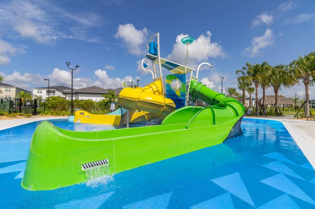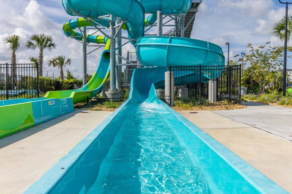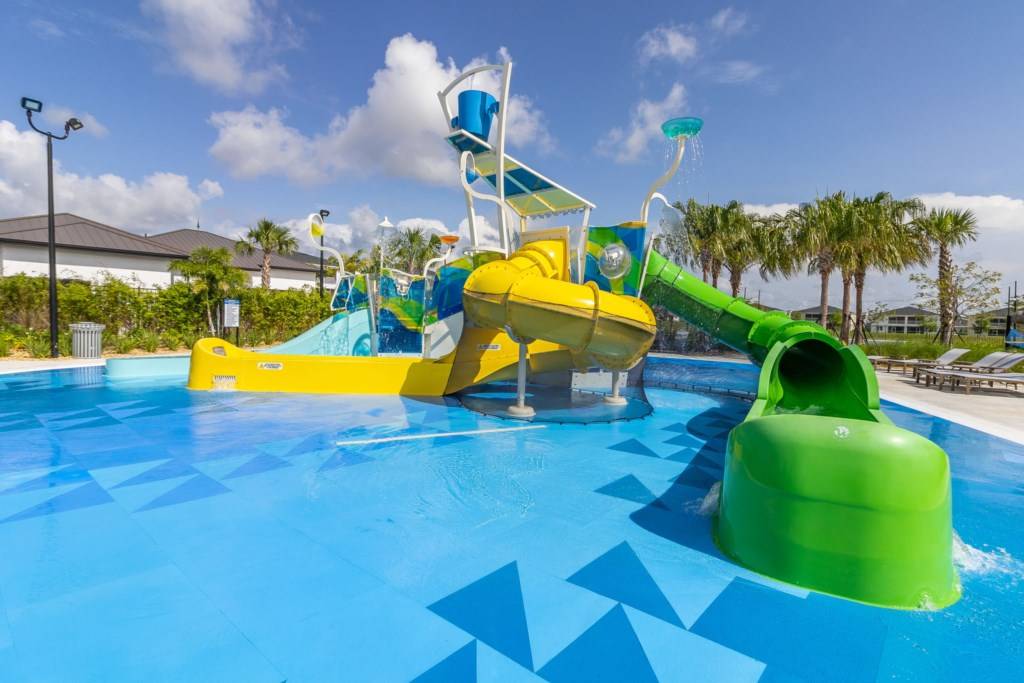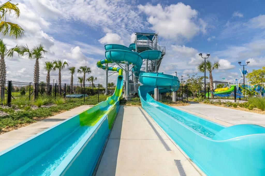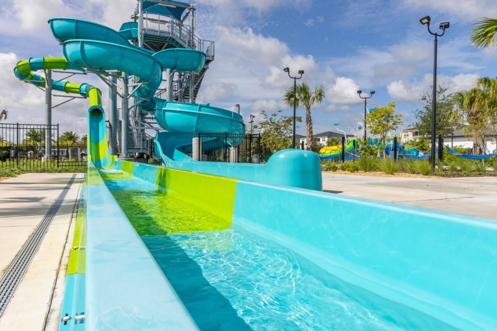 - Oasis clubhouse featuring a water park, lazy river, water slides, swim-up bar, games room, and tiki bar